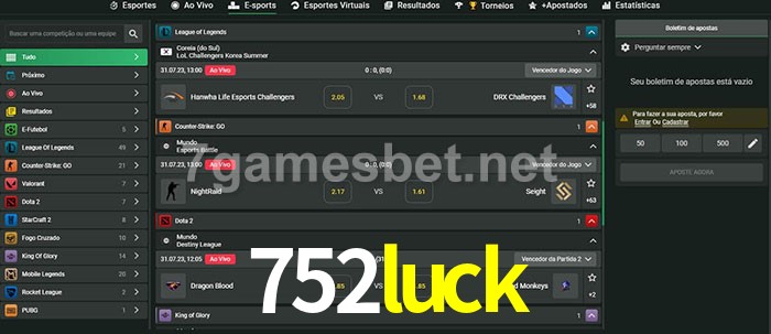 A aposta 752luck oferece aos jogadores a experiência mais conveniente de apostas em eSports!